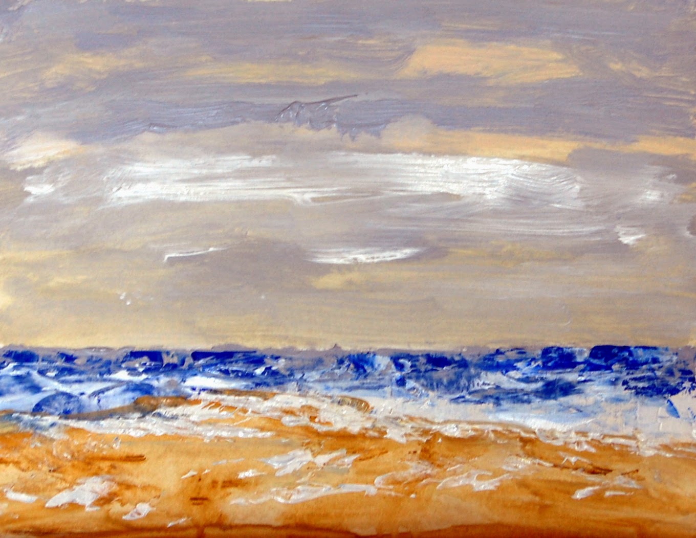 WIP - "Chamisa Yellow" block-in - I normally begin all my paintings in the same manner - I draw a straight horizon line and then using very watery acrylic paint I loosely put in elements and directional lines that I might or might not use in the final version of the painting.