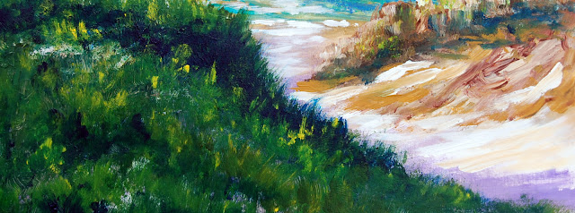 Rockin' & Slow Dancin' In California - heavy linen paper - Chroma Interactive acrylics done in a loose painterly style using a style similar to that of Brad Teare (thick paint.) 2 1/2 inch brush used - very quickly with lots of spontaneity and a love for the ocean.