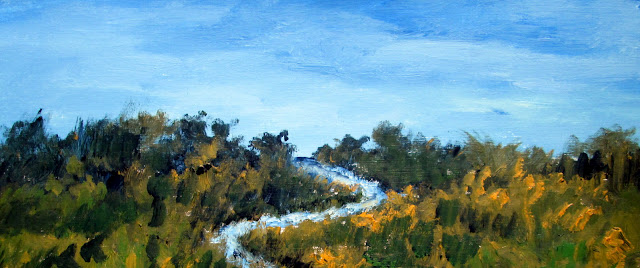 Most of these paintings are 12 x 16 unless otherwise noted and all of them are done on heavy linen paper - using large brushes in a loose painterly style and on occasion a palette knife using a "thick paint" style.